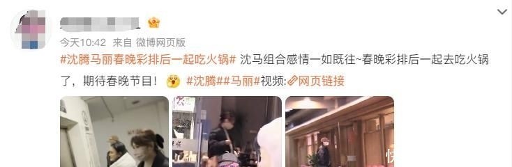 点开热搜内容可见,事件的起因是沈腾与马丽在完成春晚彩排后,分别乘坐车辆,一前一后抵达了同一家位于北京朝阳区的火锅店。这一幕被现场粉丝拍下并上传网络,瞬间点燃网友情绪,“沈马组合”再度成为全民关注焦点,不少人感慨:“没有他俩的春晚,总觉得少了点年味。”